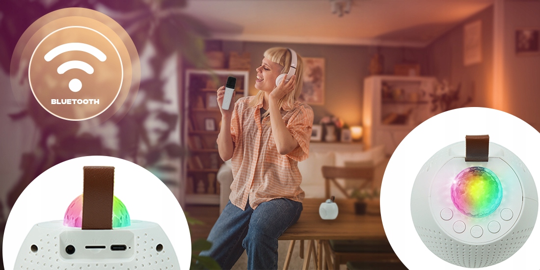 ✅ Zestaw Karaoke LED z wbudowaną baterią – ładowanie USB-C 5V