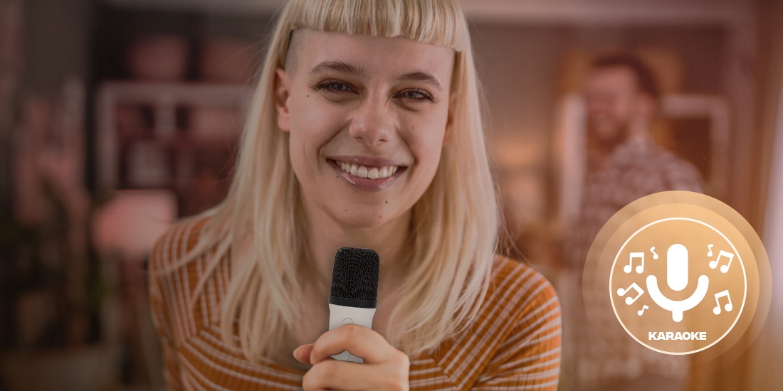 ✅ Zestaw zawiera: kabel do ładowania USB, dwa mikrofony bezprzewodowe z regulacją głośności i 5 efektami wokalu