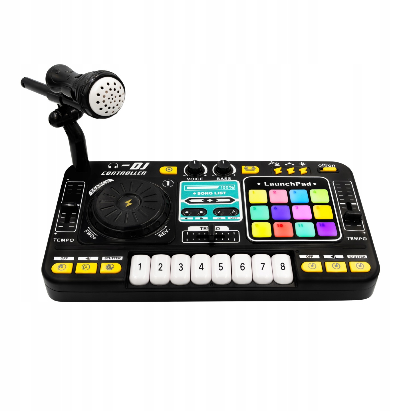 Konsola DJ MUSICMATE MM-DJ50 KidzBeatz to świetna propozycja dla dzieci i młodzieży, które chcą rozpocząć przygodę z miksowaniem muzyki. Wyposażona w efekty DJ, pady, scratch, fader i kolorowe podświetlenie LED, pozwala na tworzenie dynamicznych setów muzycznych. Dzięki złączom AUX i mikrofonowemu Jack 3.5 mm oraz wyjściu słuchawkowemu, zapewnia pełną funkcjonalność podczas zabawy i nauki. W zestawie znajduje się mikrofon z regulowanym uchwytem, kabel USB-C, pulpit na telefon i naklejki na klawisze, co czyni konsolę jeszcze bardziej atrakcyjną dla najmłodszych twórców. Kompaktowe wymiary oraz wbudowana bateria sprawiają, że urządzenie można zabrać wszędzie – na imprezę lub piknik.