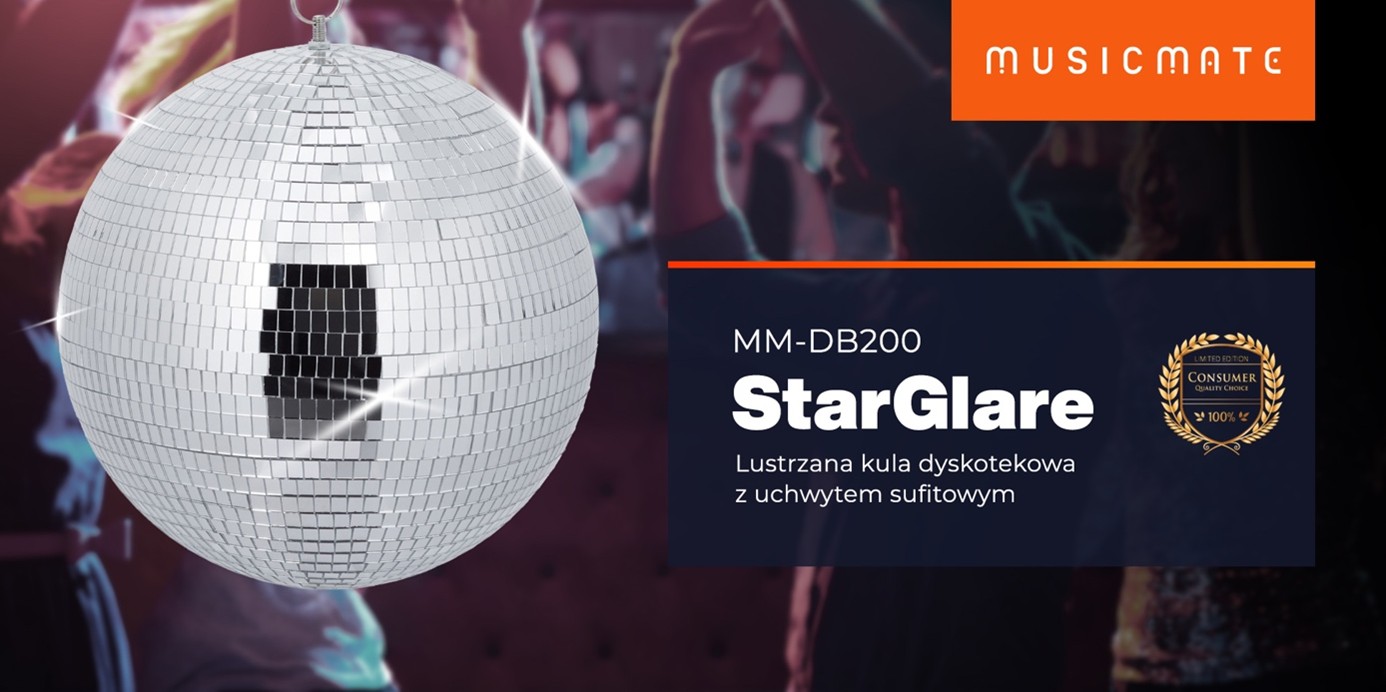 MM-DB200 Star Glare to tradycyjna kula dyskotekowa, która nadaje przestrzeni wyjątkowy efekt świetlny. O średnicy 30 cm i wadze ok. 1 kg, kula jest wyposażona w setki lusterek z tworzywa sztucznego o wymiarach 10x13 mm, które doskonale odbijają i rozpraszają światło, tworząc charakterystyczne, wyraziste punkty świetlne. Dzięki temu kula sprawdzi się zarówno w profesjonalnych przestrzeniach, takich jak kluby muzyczne czy sale taneczne, jak i w domowych pomieszczeniach, nadając im imprezowy charakter.